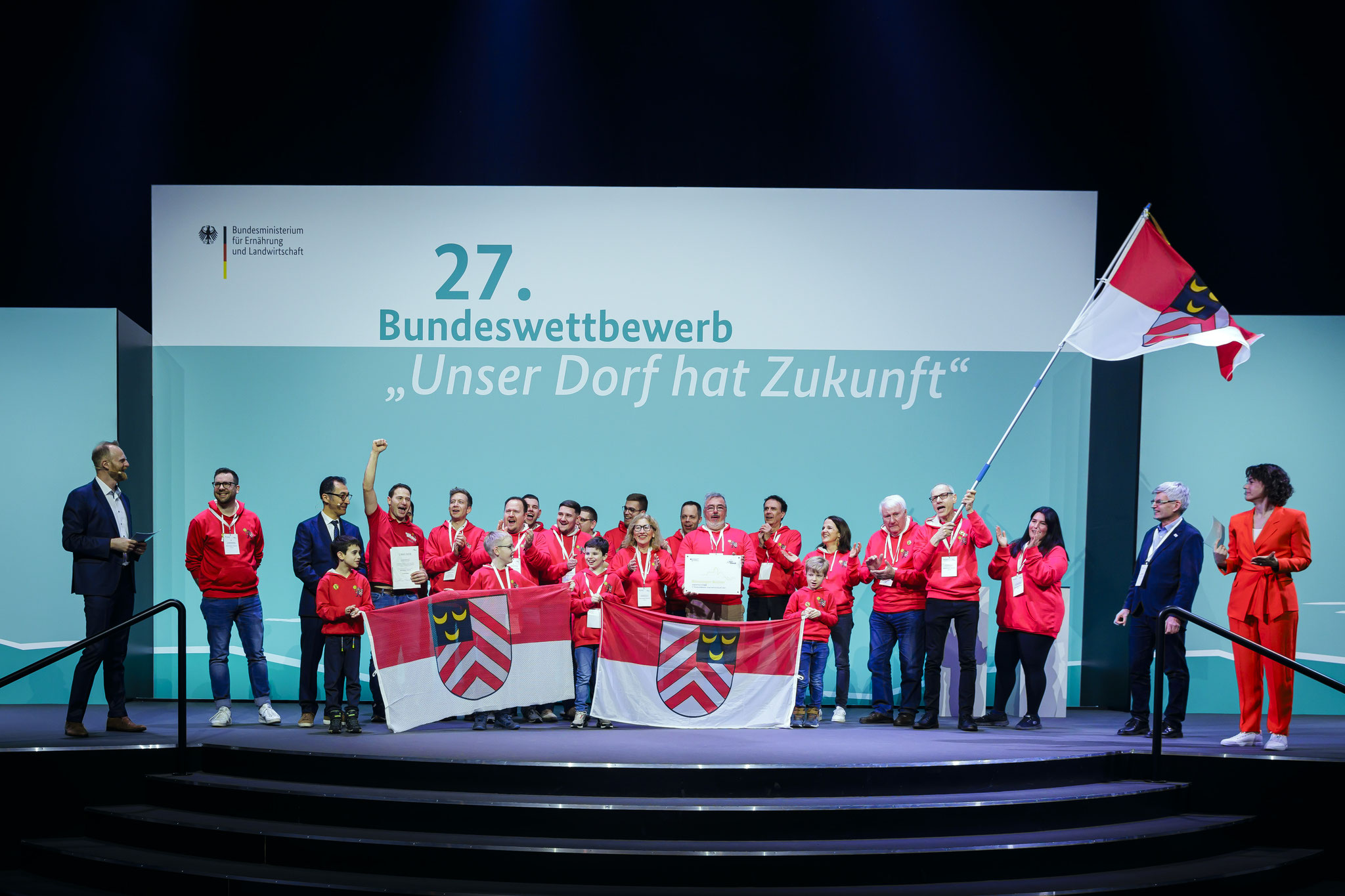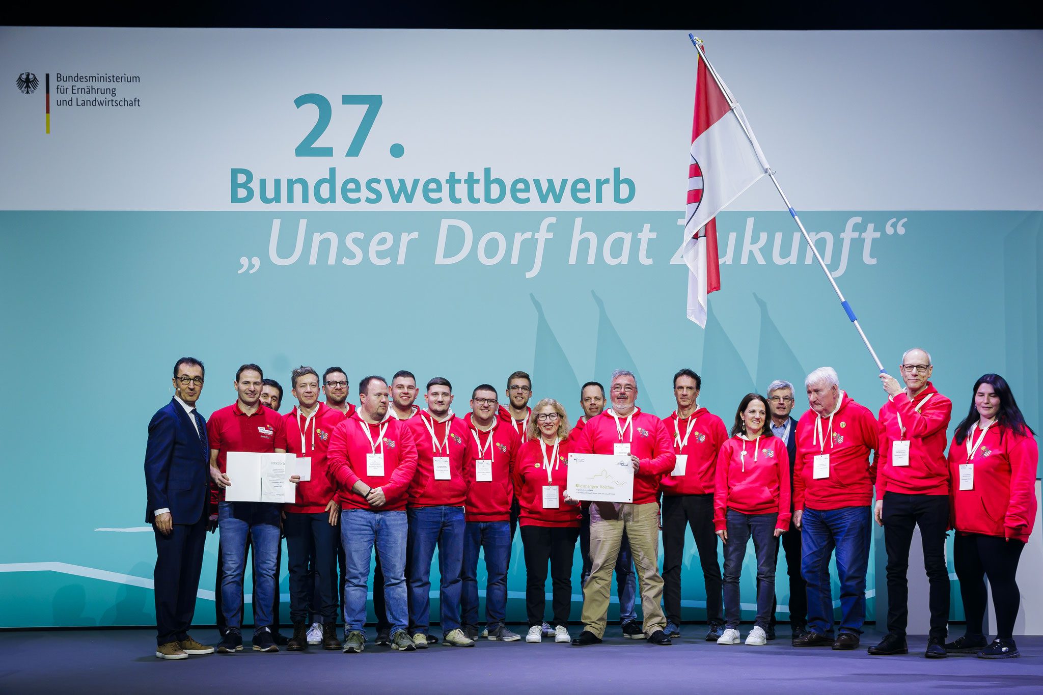 Am vergangenen Freitag, den 26. Januar 2024 war es endlich so weit: Rund 140 Menger, Bolcher und Freunde durften ihre Gold-Auszeichnung für den Sieg beim 27. Bundeswettbewerb „Unser Dorf hat Zukunft“ aus den Händen des Bundesministers für Ernährung und Landwirtschaft Cem Özdemir entgegennehmen. Im CityCube Berlin feierten ca. 3.000 geladene Gäste aus 22 Siegerdörfern gemeinsam bis tief in die Nacht.
