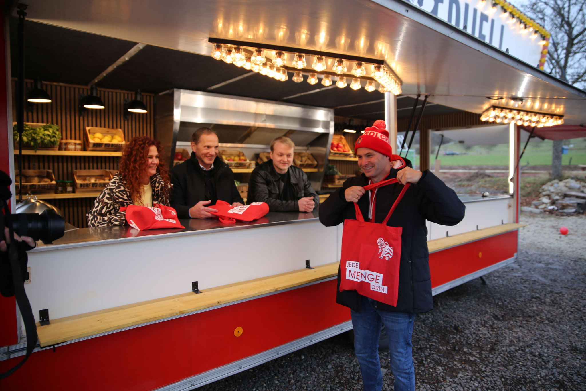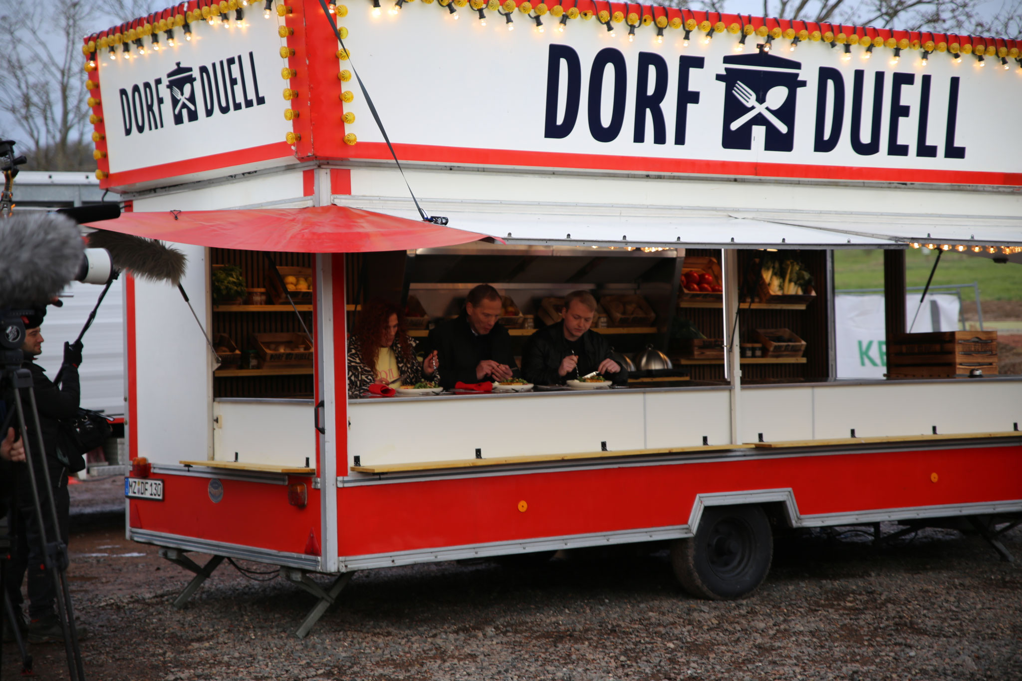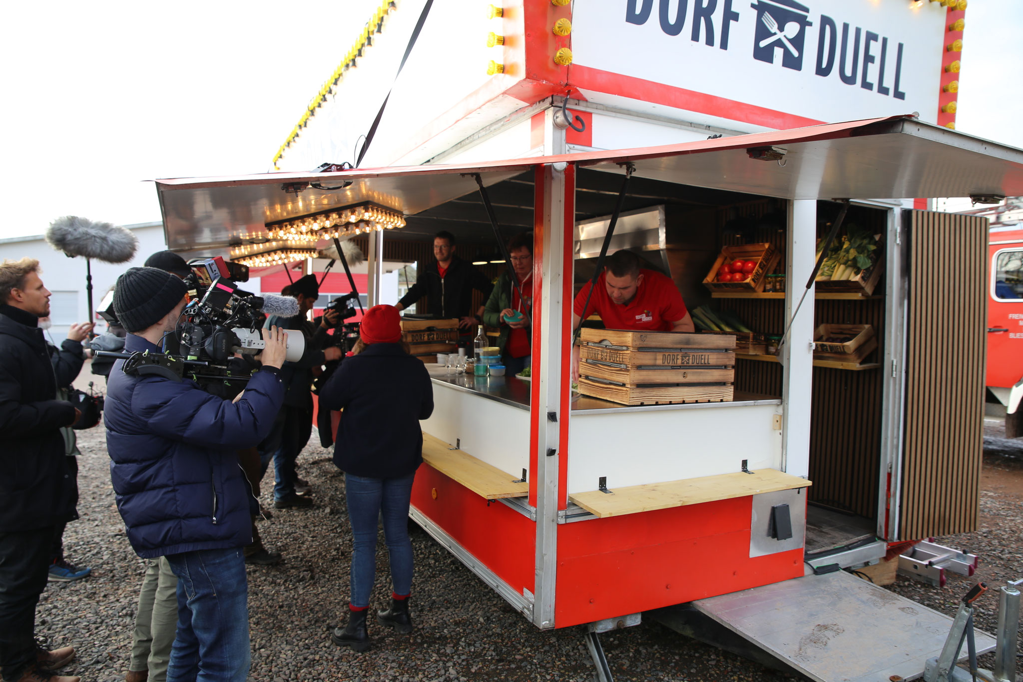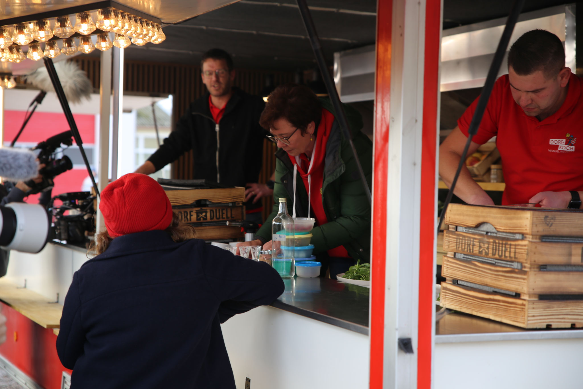 Ein rund 30-köpfiges Filmteam war ab dem frühen Vormittag im Einsatz und richtete seine Kameras und Mikrofone auf unsere Dorfköche. Währenddessen verwandelte sich Bliesmengen-Bolchen in einen lebendigen Drehschauplatz: Viele Einwohnerinnen und Einwohner sowie Ortsvorsteher Timm Braun, der sich im Vorfeld um die Organisation und Koordination kümmerte, unterstützten das Kochteam auf dem Festplatz lautstark und trugen spürbar zum Gelingen des Drehtags bei. Ein besonderer Dank gilt Markus Sommer, der sich den Tag über um die Versorgung des Filmteams bemühte, sowie dem Natur- und Vogelschutzverein Bliesmengen-Bolchen, der die Bewirtung der Anwesenden vor Ort übernahm.